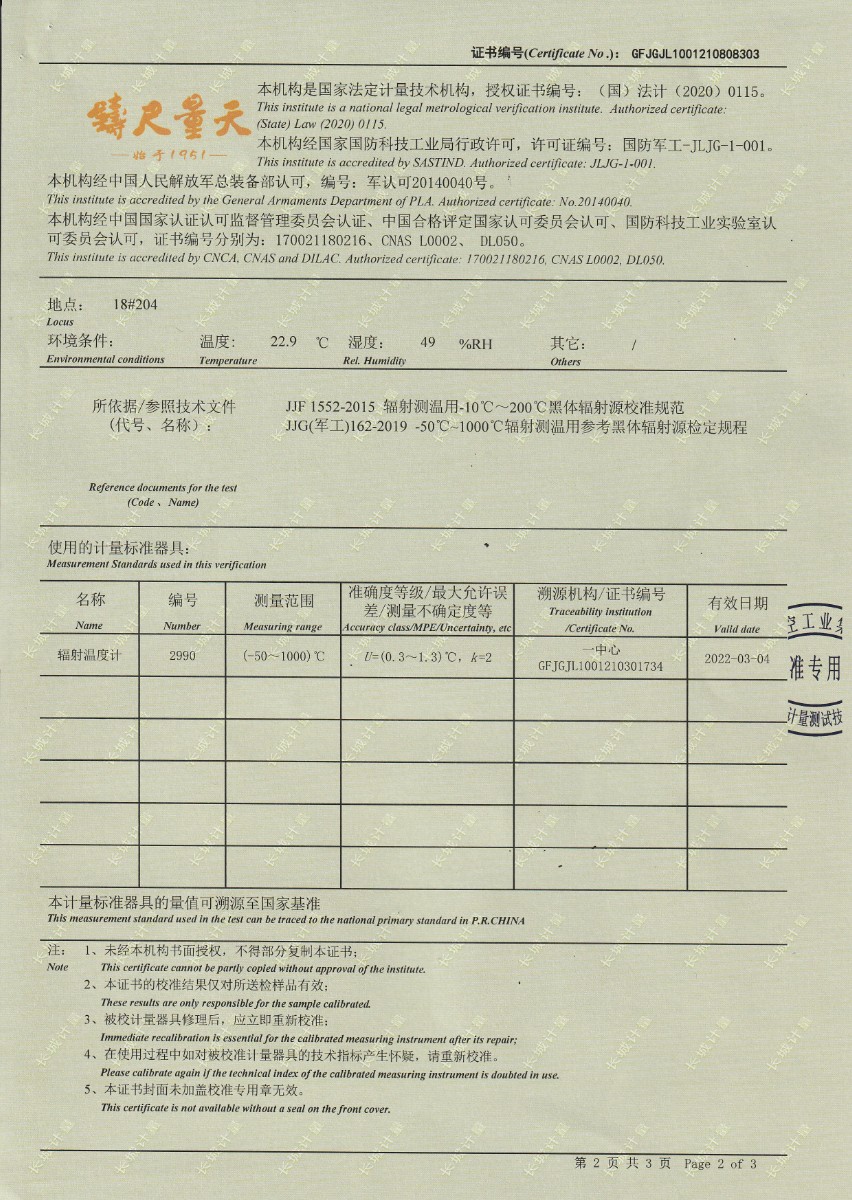 上一條:大秦鐵路股份有限公司太原車輛段-黑體爐 | 下一條:超低溫面源黑體爐(-40-80℃)校準(zhǔn)證書 |