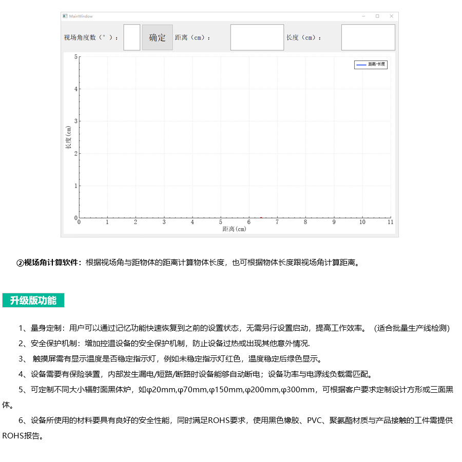 5)大面源等溫黑體輻射面,發(fā)射率可調(diào)功能(0.95-1 之間可調(diào),出廠默認(rèn)發(fā)射率 0.95)。