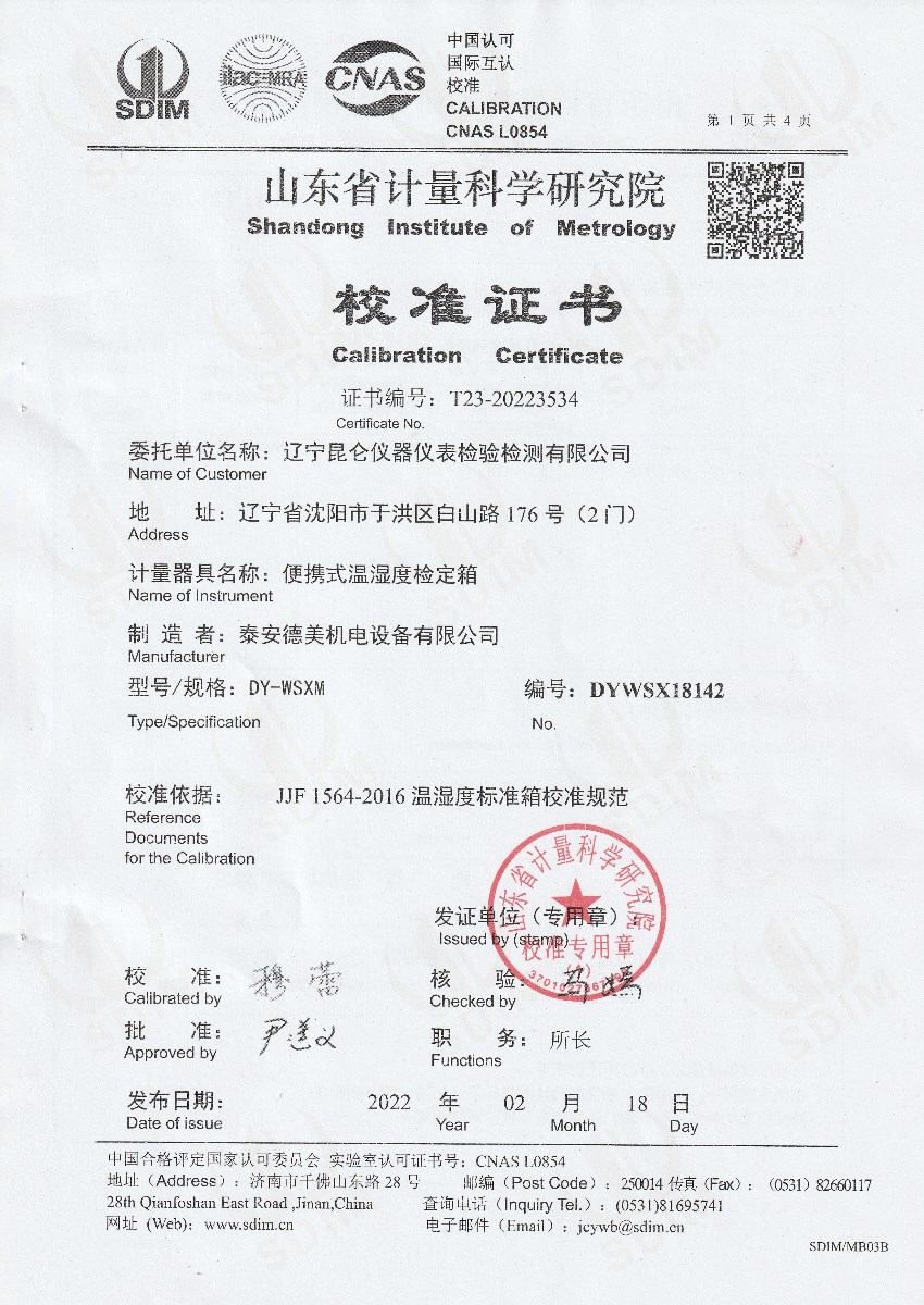 | 上一條:河北京車軌道交通車輛裝備有限公司-制冷恒溫槽 | 下一條:便攜式干體爐(-30-150℃)校準(zhǔn)證書 |