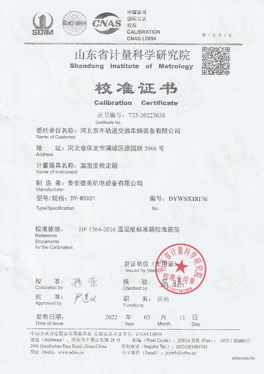 | 上一條:河北京車軌道交通車輛裝備有限公司-低電勢(shì)掃描開關(guān) | 下一條:便攜式干體爐(-30-150℃)校準(zhǔn)證書 |
