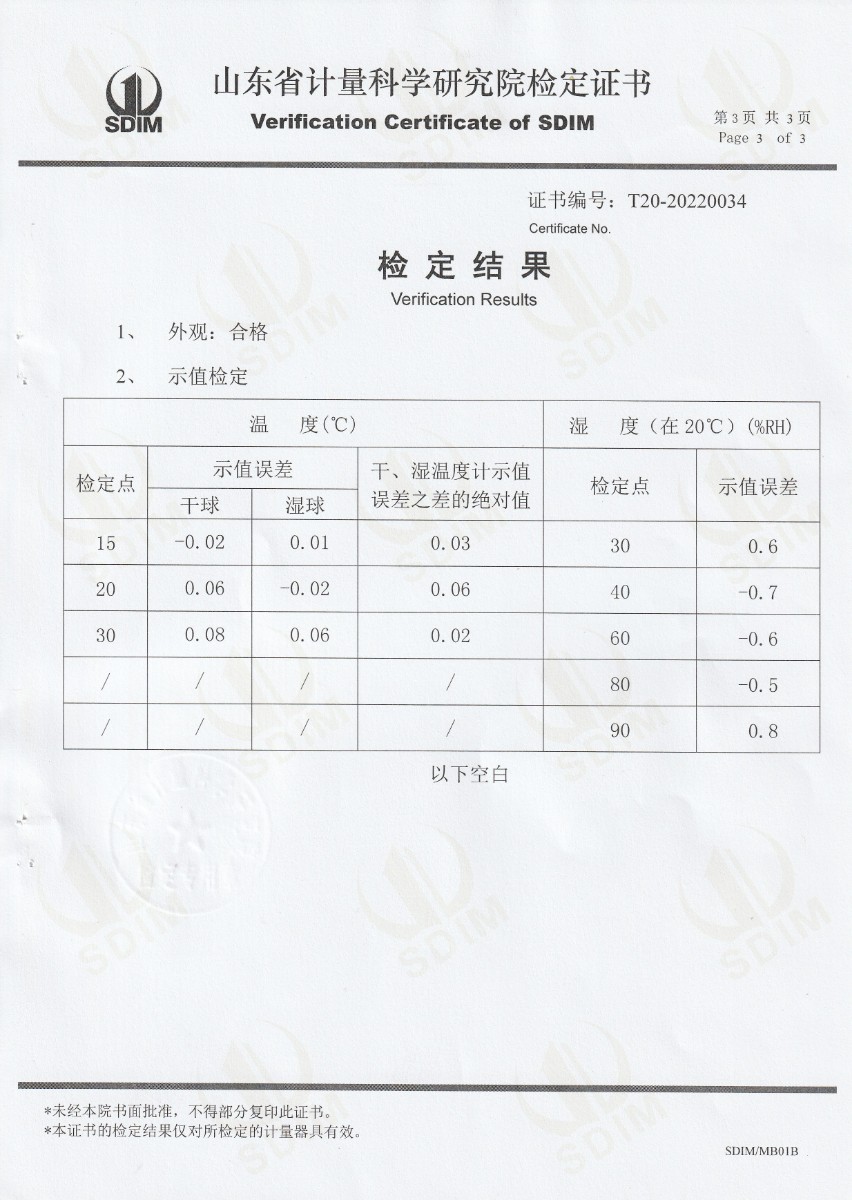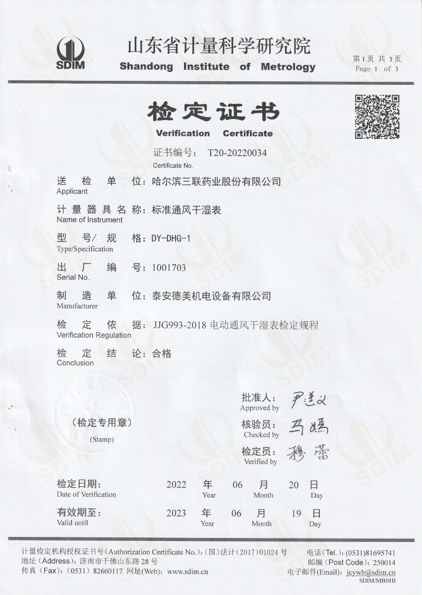 哈爾濱三聯(lián)藥業(yè)股份有限公司-標準通風(fēng)干濕表
