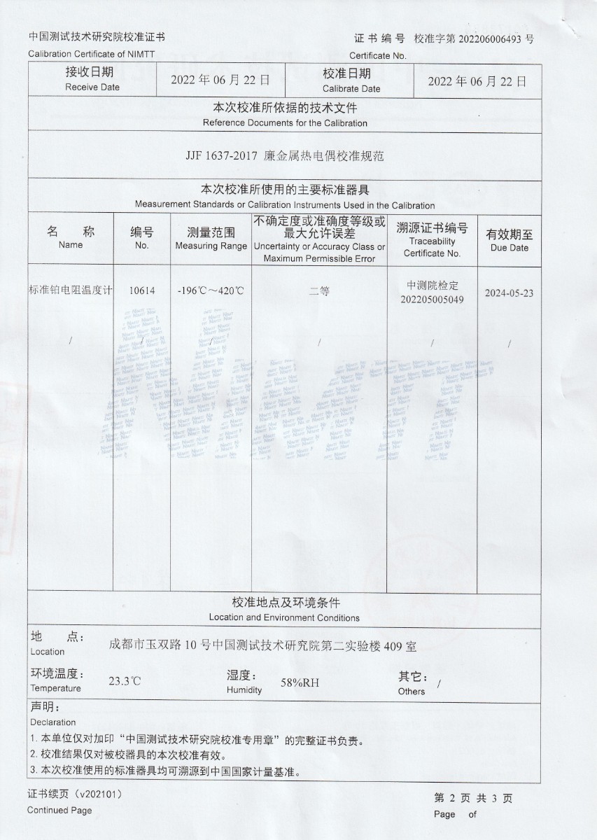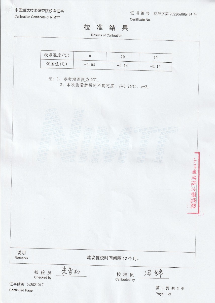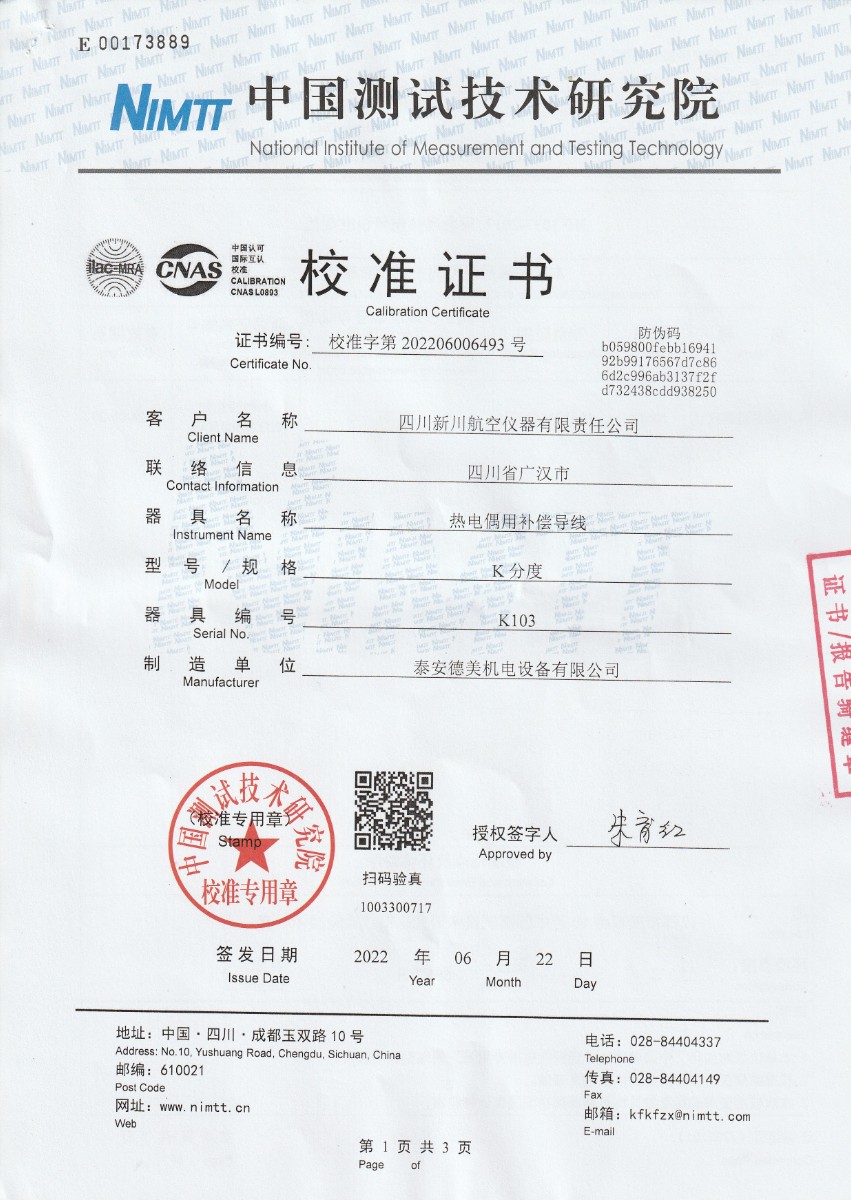 上一條:四川新川航空儀器有限責(zé)任公司-S分度補(bǔ)償導(dǎo)線 | 下一條:超低溫面源黑體爐(-40-80℃)校準(zhǔn)證書(shū) |