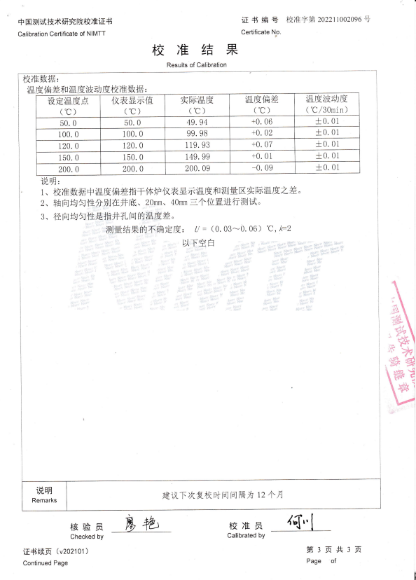 | 上一條:長(zhǎng)沙百川超硬材料工具有限公司-熱電偶檢定爐 | 下一條:便攜式干體爐(-30-150℃)校準(zhǔn)證書(shū) |