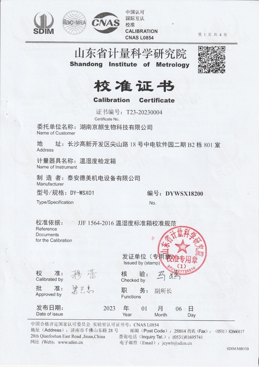 湖南京麒生物科技有限公司 溫濕度檢定箱 2023-1-16 本文被閱讀 13186 次