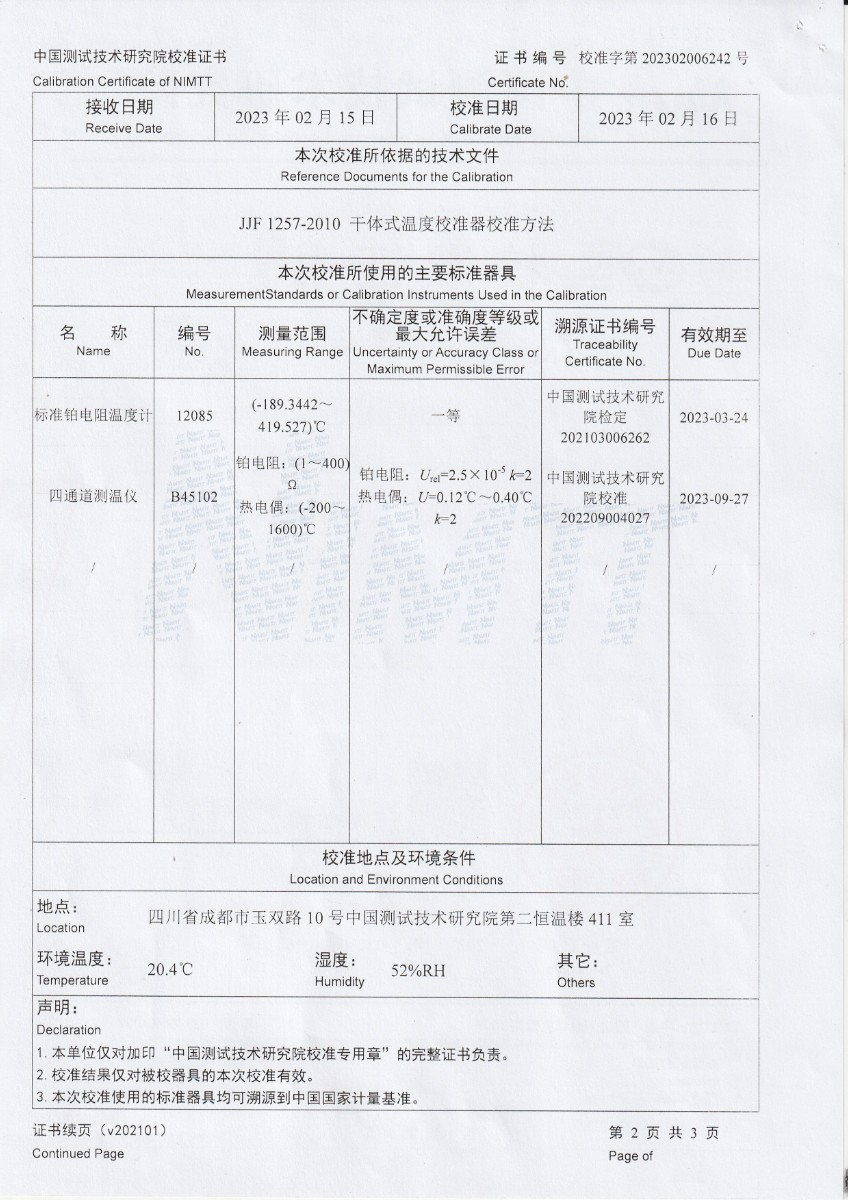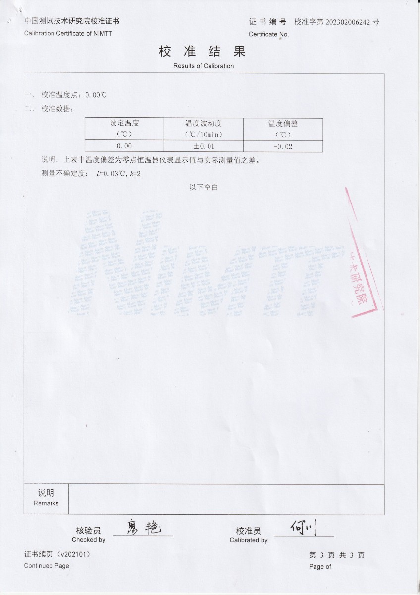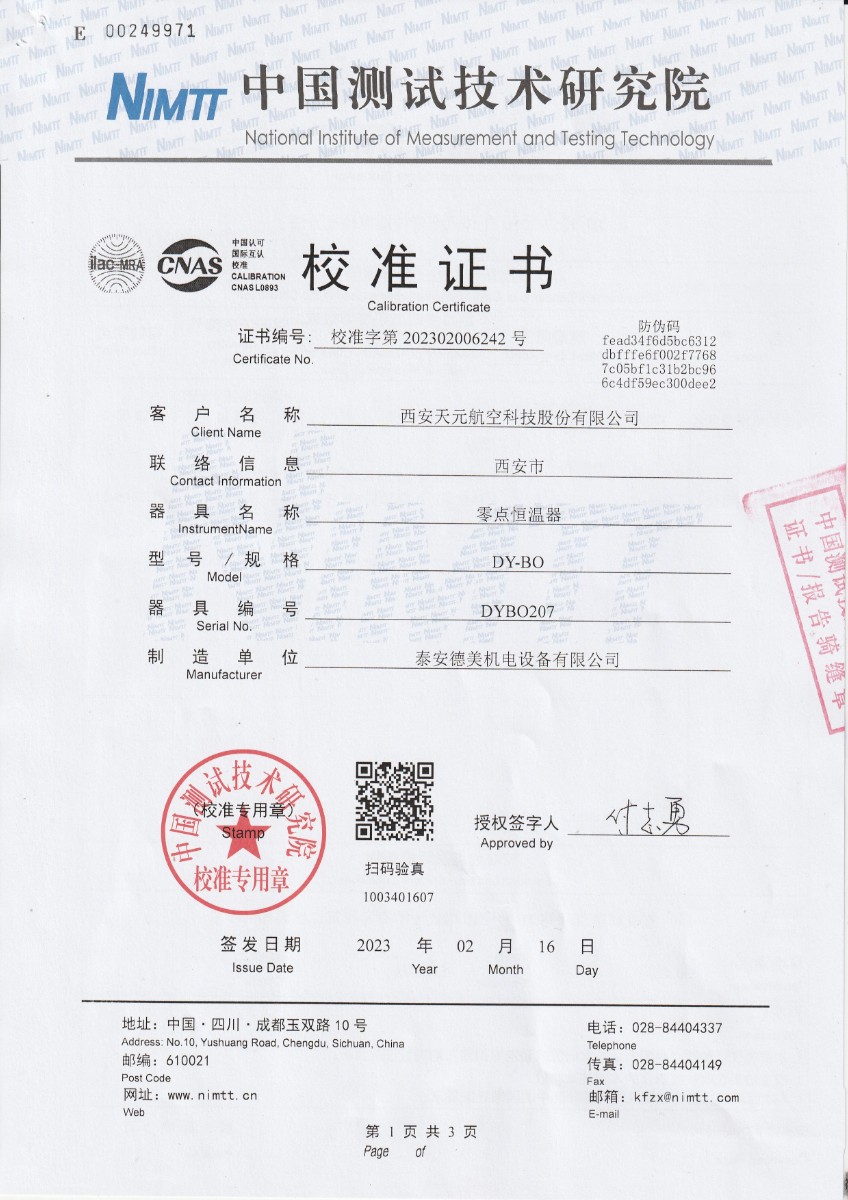 西安天元航空科技股份有限公司 零點恒溫器 校準證書 2023-2-25 本文被閱讀 11933 次