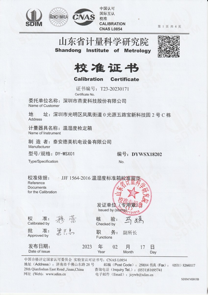 上一條:甘肅東興嘉宇新材料有限公司 干體溫度校驗(yàn)爐 校準(zhǔn)證書(shū)(2) | 下一條:超低溫面源黑體爐(-40-80℃)校準(zhǔn)證書(shū) |