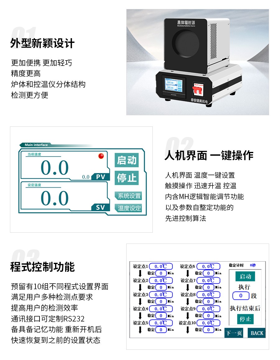 標(biāo)準黑體作為標(biāo)準輻射源,主要用于校準輻射溫度計、紅外溫度計和輻射溫度傳感探測器。我公司目前具有先進的黑體技術(shù),產(chǎn)品種類全、溫度范圍寬的黑體系列產(chǎn)品。產(chǎn)品體積小、重量輕、便于攜帶,不僅適合各級計量機構(gòu)實驗室校準輻射溫度計使用,同時可以用于現(xiàn)場校準。面源黑體輻射源是紅外輻射工作標(biāo)準,廣泛應(yīng)用在紅外探測器的研制過程中的工藝測試和鑒定試驗的技術(shù)指標(biāo)測試中。同時,面源黑體輻射源作為紅外成像棱準裝置的核心設(shè)備,配合紅外準直光學(xué)系統(tǒng)和紅外靶標(biāo),完成紅外成像系統(tǒng)等關(guān)鍵技術(shù)指標(biāo)測試和性能評估??梢詽M足我國新研制的紅外成像制導(dǎo)武器中紅外成像器的測試需求,可以滿足廣泛應(yīng)用于醫(yī)療、建筑、安全監(jiān)控、環(huán)境檢測等行業(yè)紅外熱像儀的測試需求。