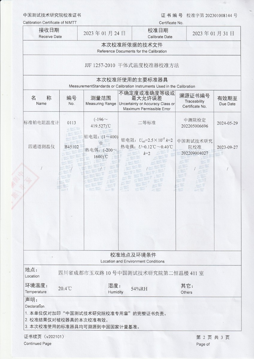 上一條:甘肅東興嘉寧新材料有限公司 干體溫度校驗爐 校準證書下一條:超低溫面源黑體爐(-40-80℃)校準證書