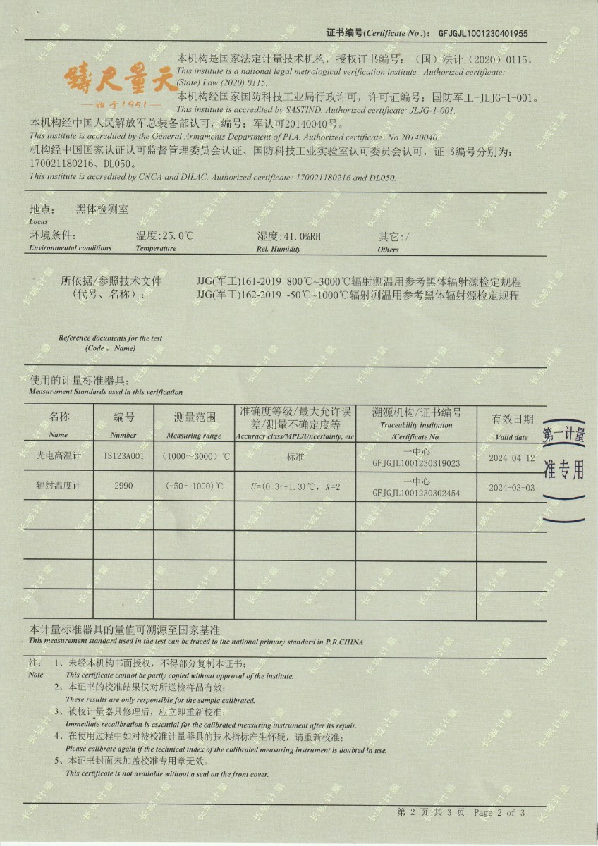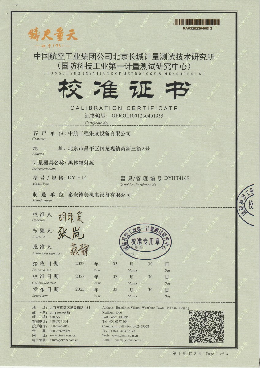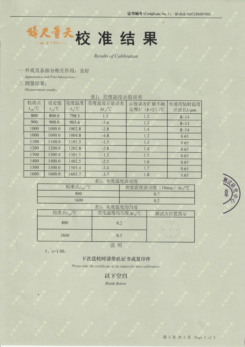 上一條:浙江弘志計(jì)量測(cè)試有限公司 黑體輻射源 校準(zhǔn)證書(shū) | 下一條:超低溫面源黑體爐(-40-80℃)校準(zhǔn)證書(shū) |