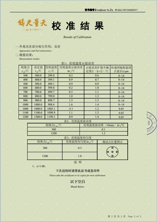 腔式黑體輻射源(300-1200℃)304所證書 2024-6-18 本文被閱讀 6404 次