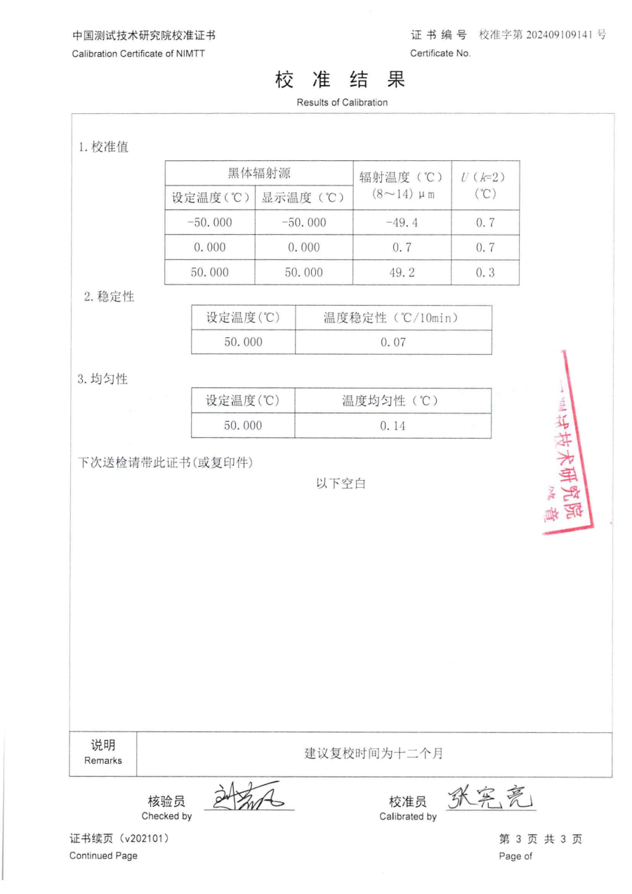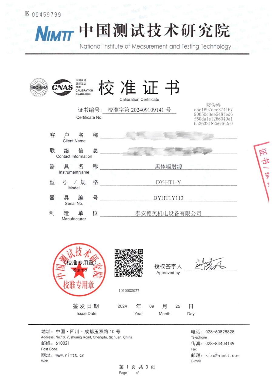 上一條:高溫腔式黑體校準(zhǔn)證書下一條:超低溫面源黑體爐(-40-80℃)校準(zhǔn)證書