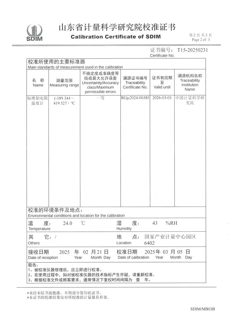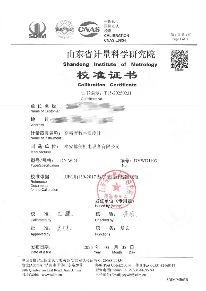 高精度數(shù)字溫度計校準證書 2025-3-8 本文被閱讀 2914 次