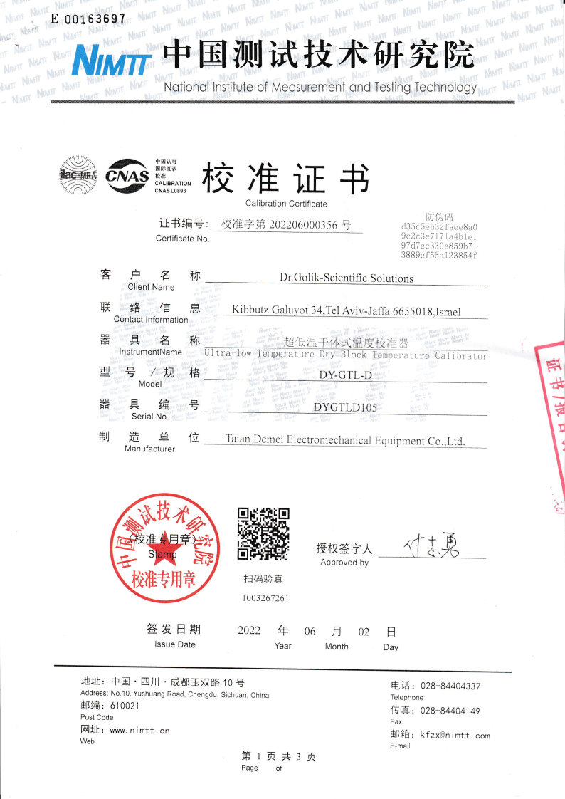以色列-超低溫干體爐 2022-6-7 本文被閱讀 13899 次