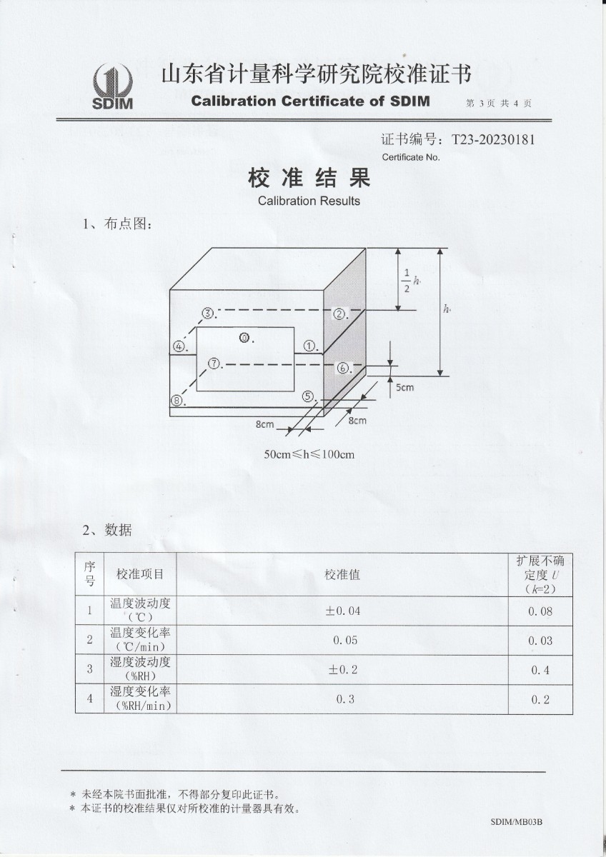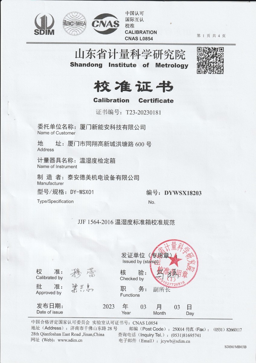 廈門新能安科技有限公司 溫濕度檢定箱 校準證書 2023-3-13 本文被閱讀 11140 次