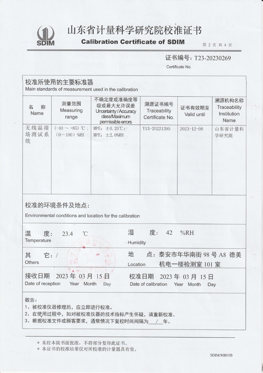 上一條:方圓檢測認(rèn)證有限公司浙江金華分公司 溫濕度檢定箱校準(zhǔn)證書 | 下一條:超低溫面源黑體爐(-40-80℃)校準(zhǔn)證書 |