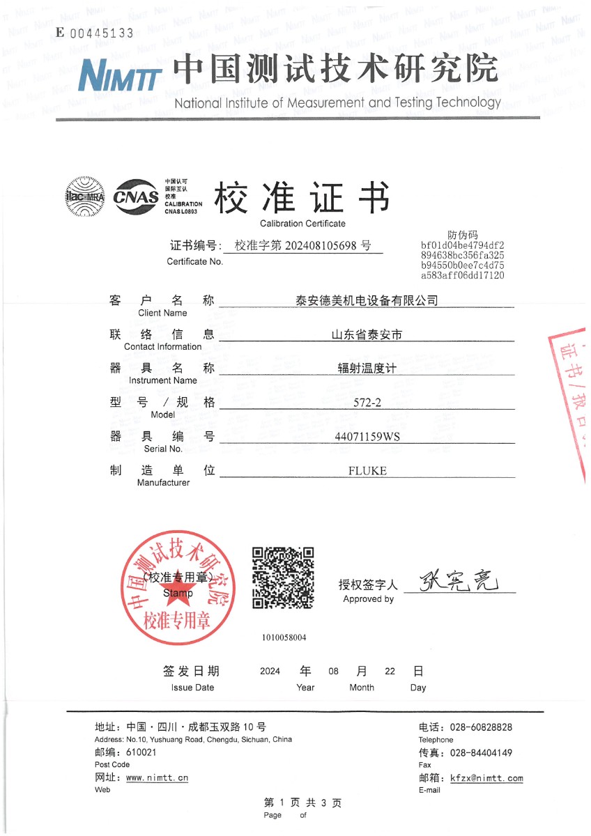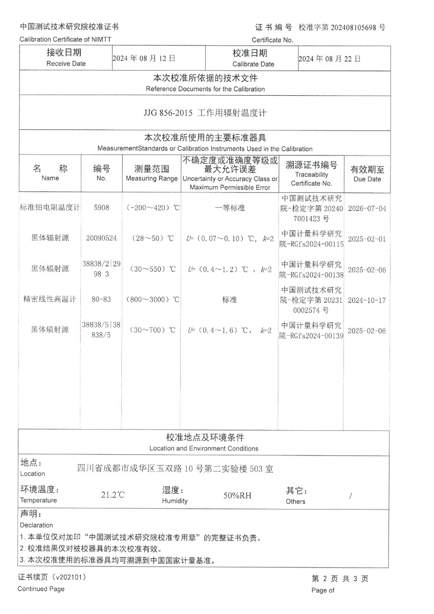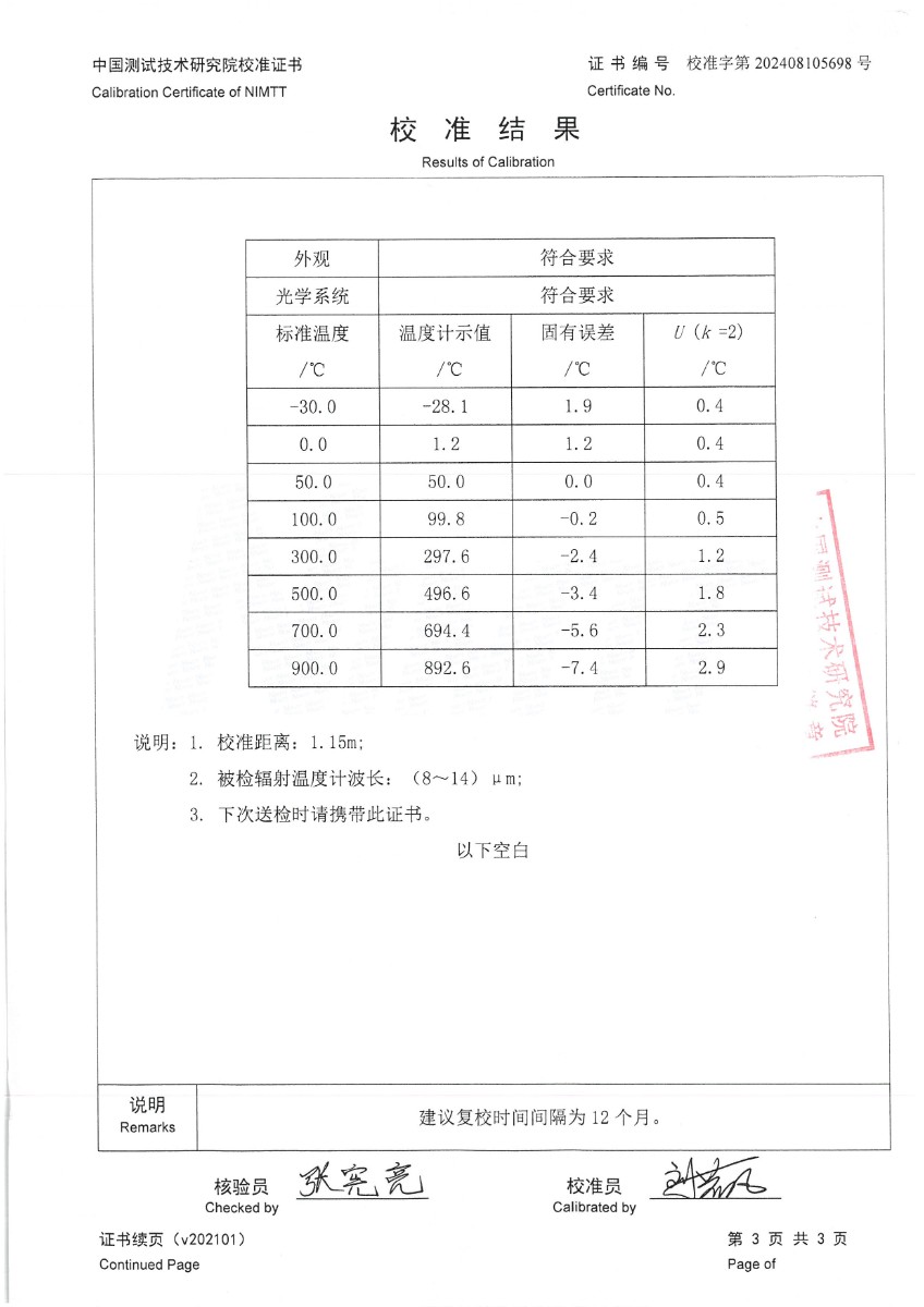 上一條:高精度數(shù)字溫度計(-80~300℃)校準(zhǔn)證書 | 下一條:便攜式干體爐(-30-150℃)校準(zhǔn)證書 |