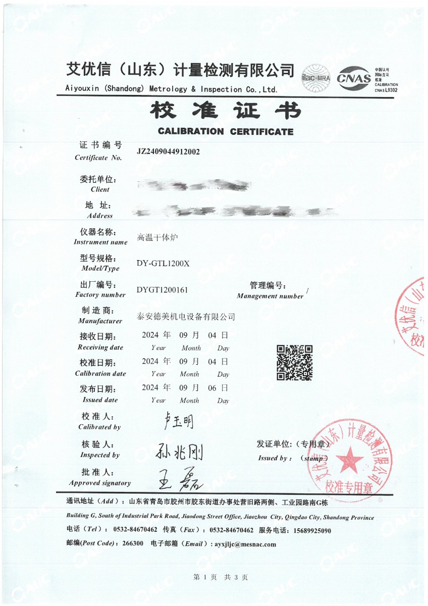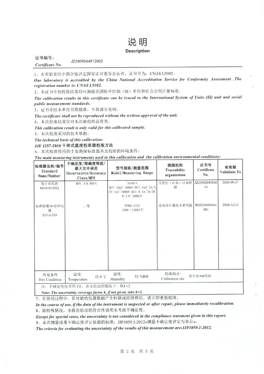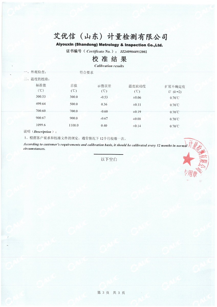 高溫干體(300~1200℃)校準(zhǔn)證書 2024-9-18 本文被閱讀 6199 次