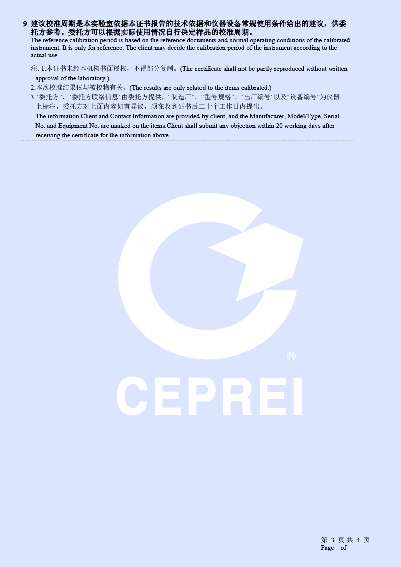 上一條:中溫面源黑體爐(室溫+5-500℃)校準(zhǔn)證書 | 下一條:超低溫面源黑體爐(-40-80℃)校準(zhǔn)證書 |
