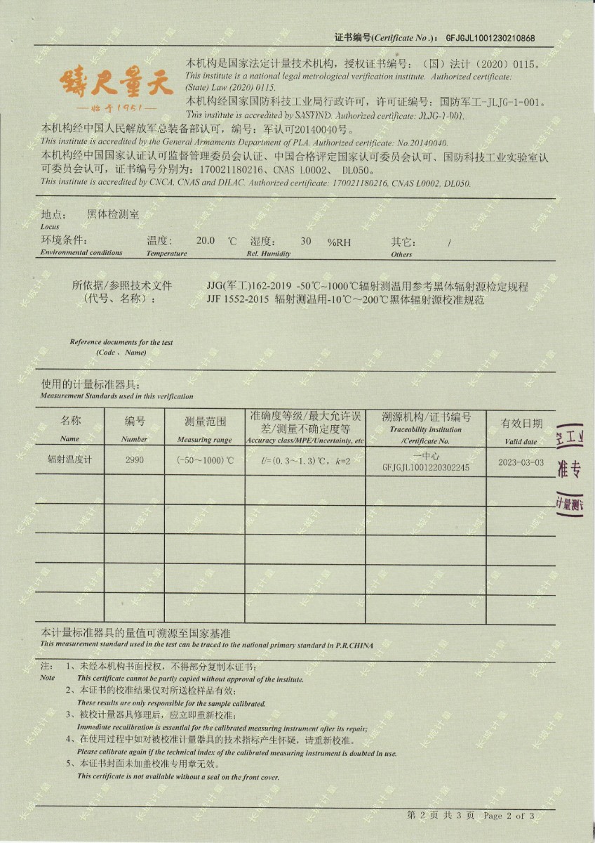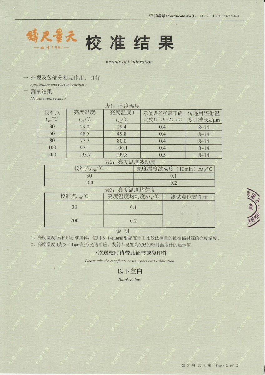 上一條:西安和其光電科技股份有限公司 低溫浴式黑體輻射源 校準(zhǔn)證書(shū) | 下一條:便攜式干體爐(-30-150℃)校準(zhǔn)證書(shū) |