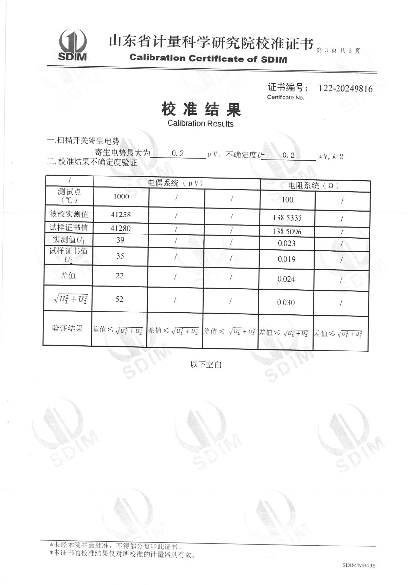 | 上一條:廉金屬熱電偶檢定爐(300~1200℃)校準(zhǔn)證書 | 下一條:便攜式干體爐(-30-150℃)校準(zhǔn)證書 |