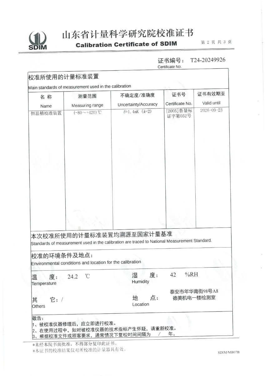 | 上一條:熱電偶、熱電阻自動(dòng)檢測系統(tǒng)校準(zhǔn)證書 | 下一條:便攜式干體爐(-30-150℃)校準(zhǔn)證書 |