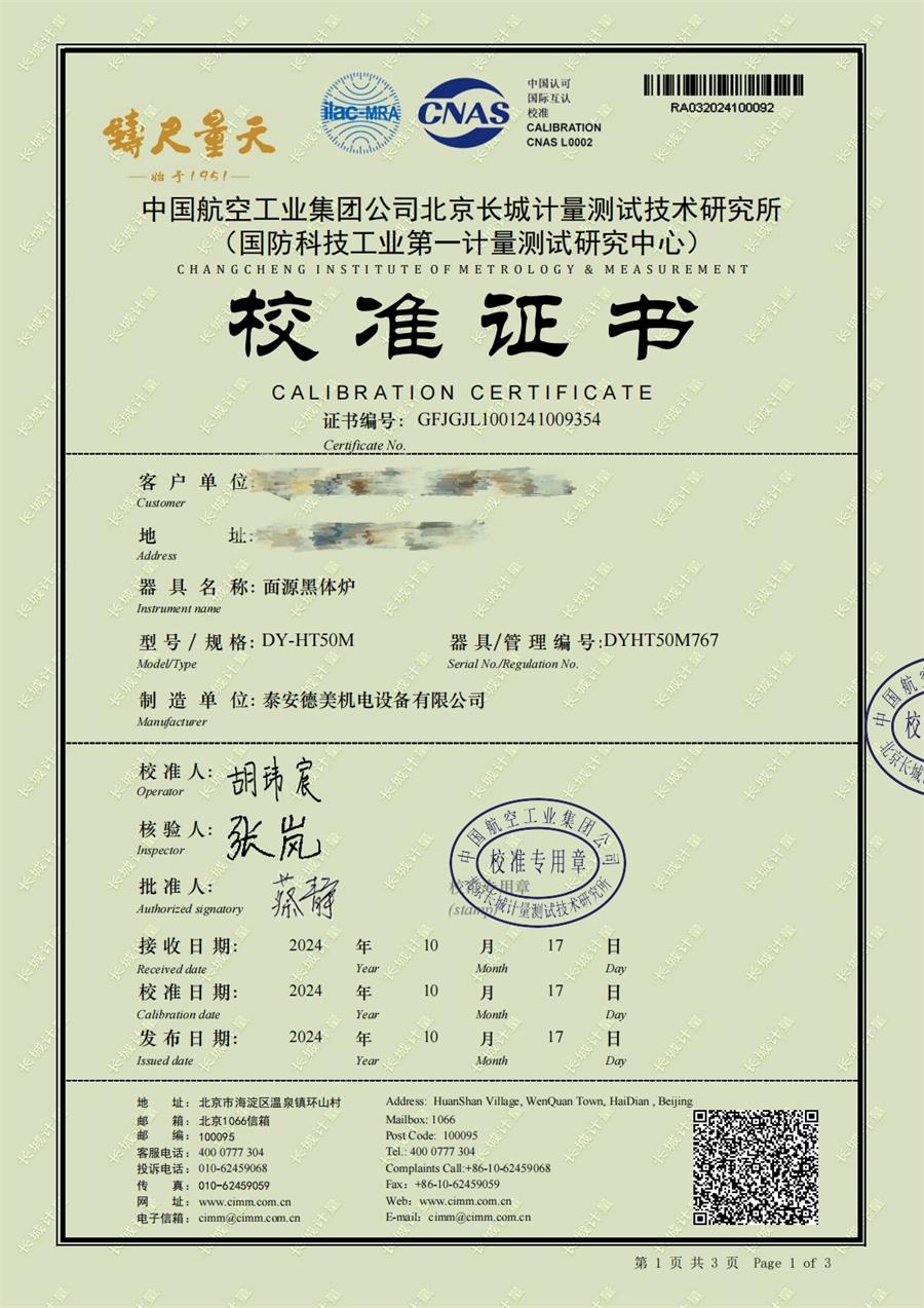 上一條:高溫黑體爐(700-1600℃)校準(zhǔn)證書 | 下一條:超低溫面源黑體爐(-40-80℃)校準(zhǔn)證書 |