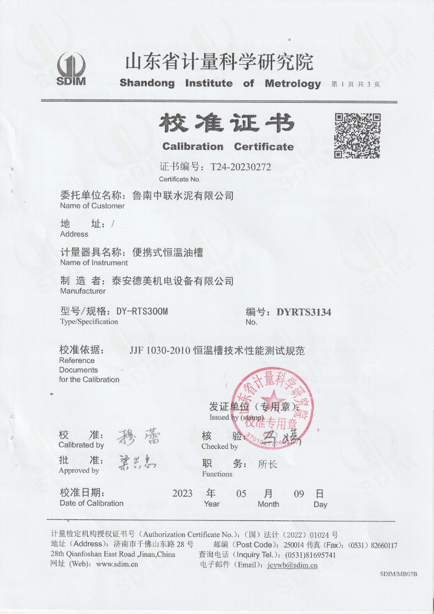 | 上一條:魯南中聯(lián)水泥有限公司 便攜式制冷恒溫槽 校準(zhǔn)證書 | 下一條:便攜式干體爐(-30-150℃)校準(zhǔn)證書 |