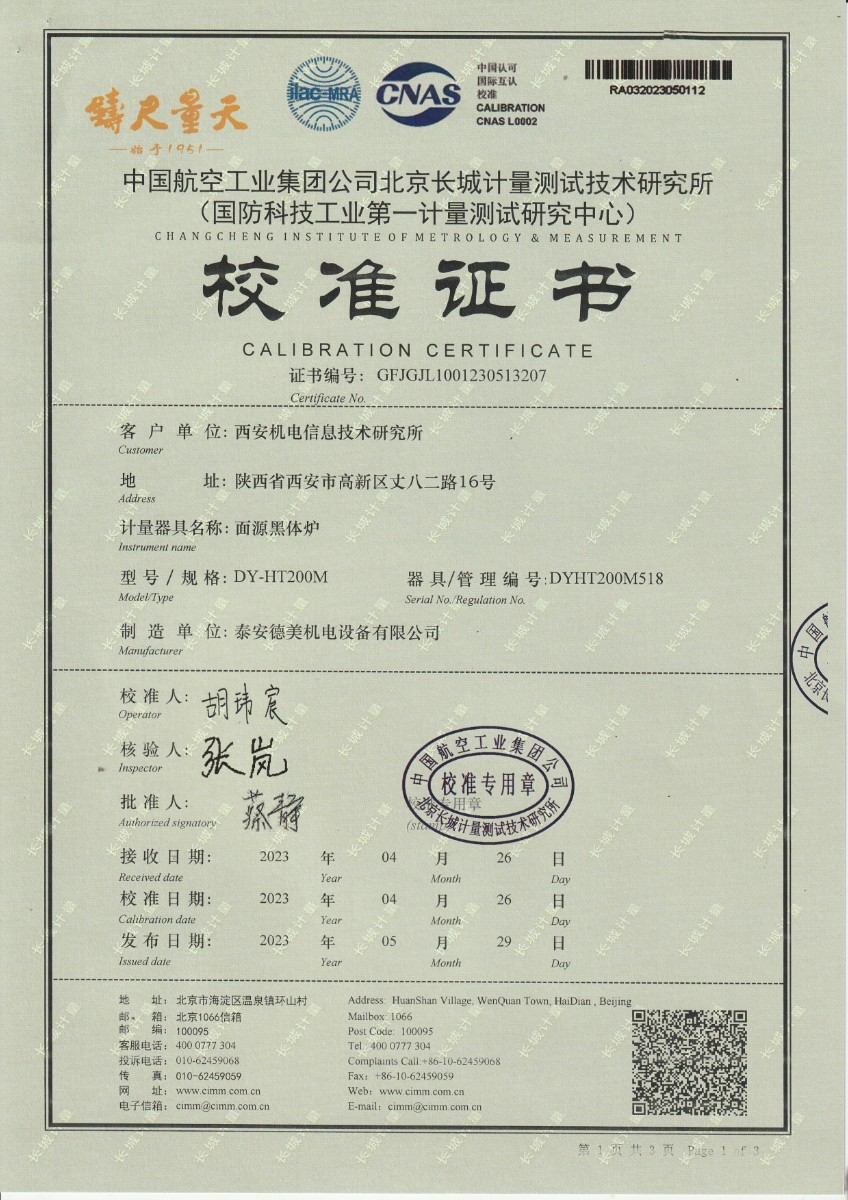 | 上一條:云南馳宏國(guó)際鍺業(yè)有限公司 面源黑體校準(zhǔn)證書 | 下一條:便攜式干體爐(-30-150℃)校準(zhǔn)證書 |