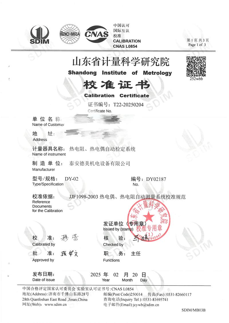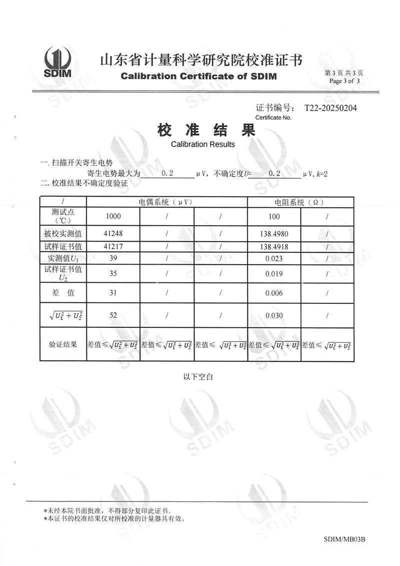 上一條:T分度補(bǔ)償導(dǎo)線檢定證書 | 下一條:超低溫面源黑體爐(-40-80℃)校準(zhǔn)證書 |