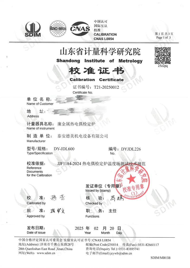 上一條:熱電阻、熱電偶自動檢定系統(tǒng)校準證書下一條:超低溫面源黑體爐(-40-80℃)校準證書