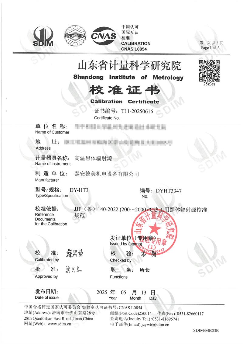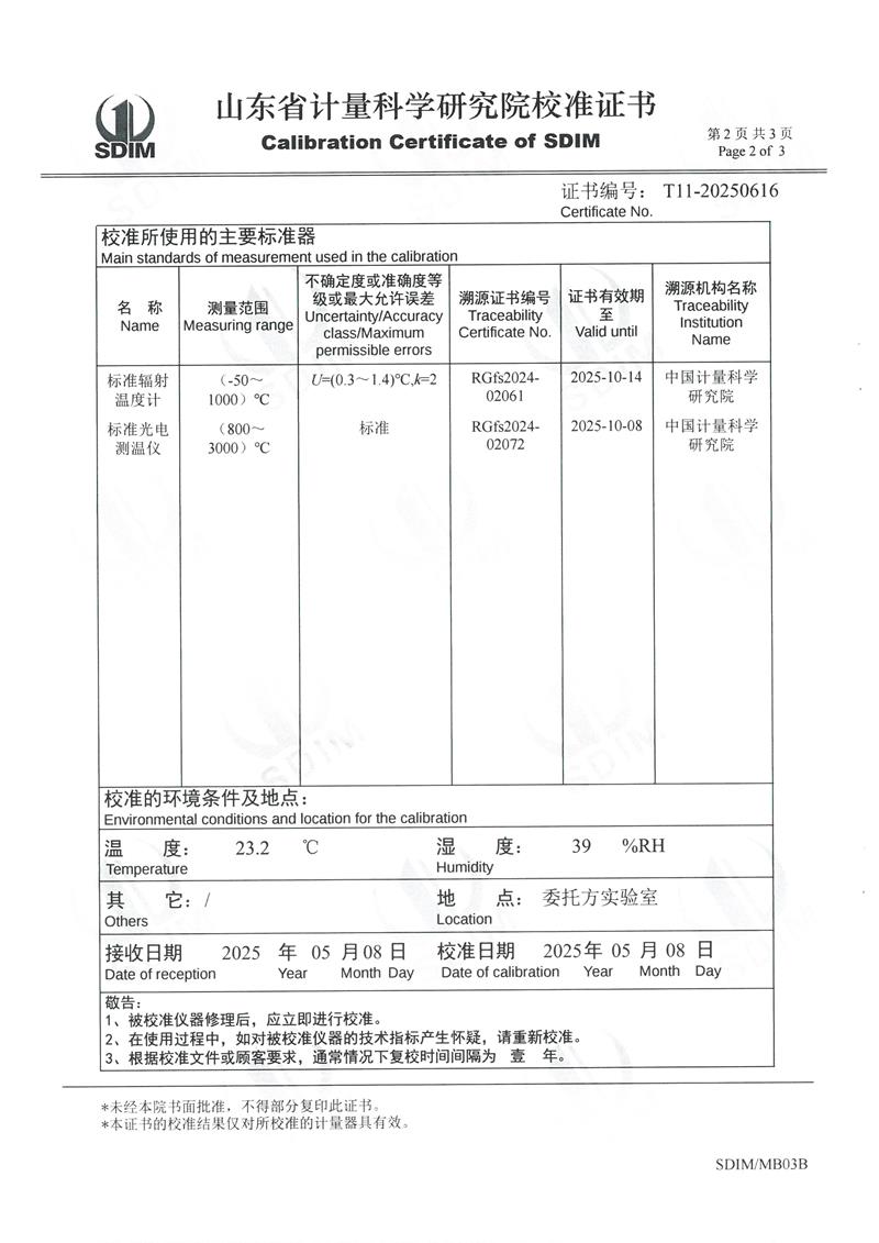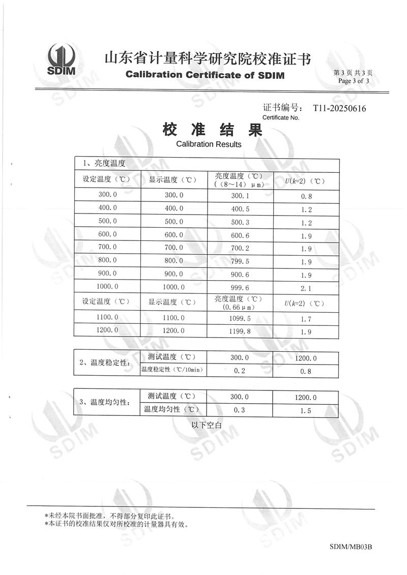 上一條:黑體爐(50~400℃)校準(zhǔn)證書 | 下一條:超低溫面源黑體爐(-40-80℃)校準(zhǔn)證書 |