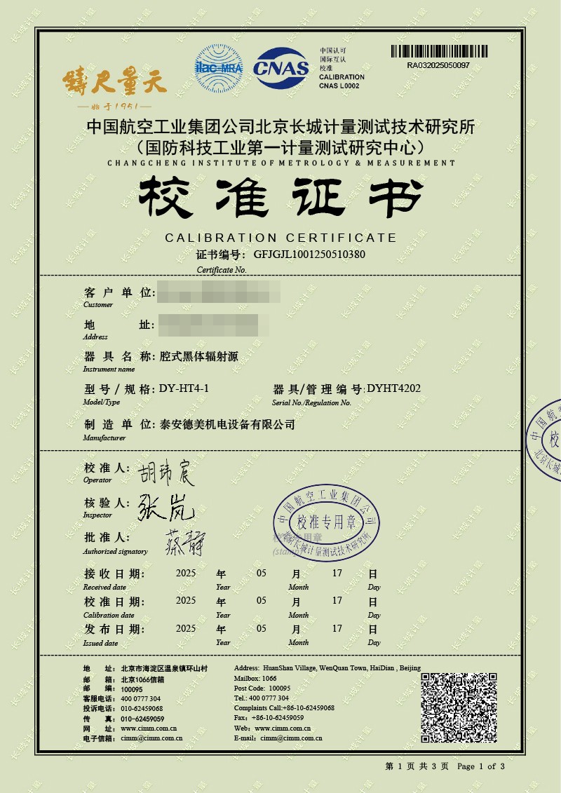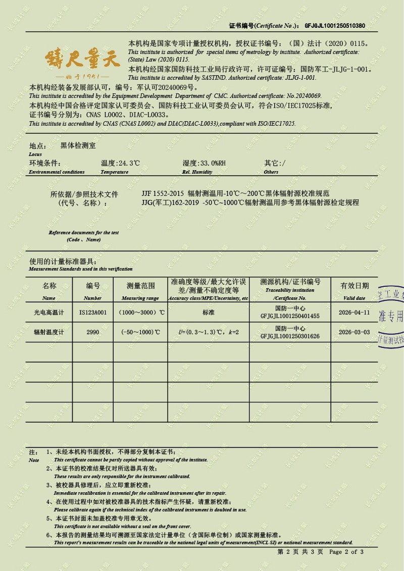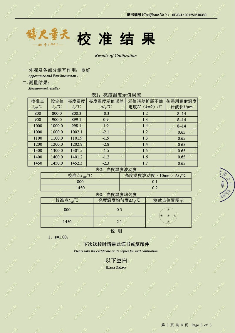 腔式黑體輻射源(800-1450℃)校準證書 2025-5-28 本文被閱讀 2693 次