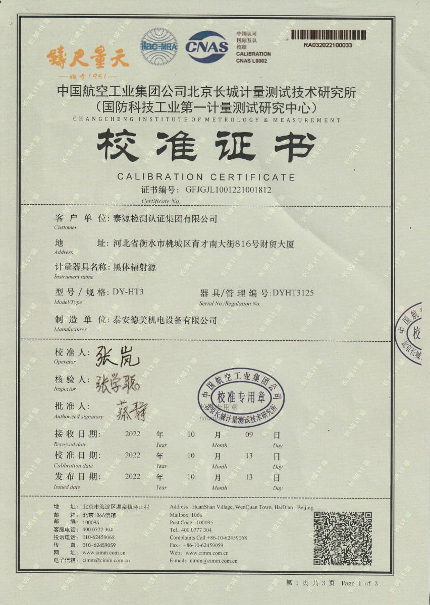 | 上一條:標準器計算軟件V1.0-計算機軟件著作權(quán)登記證書 | 下一條:便攜式干體爐(-30-150℃)校準證書 |