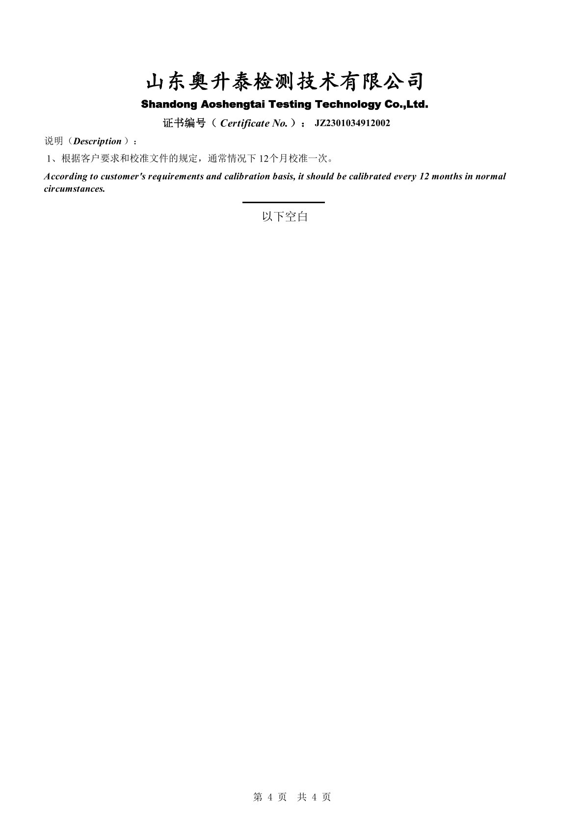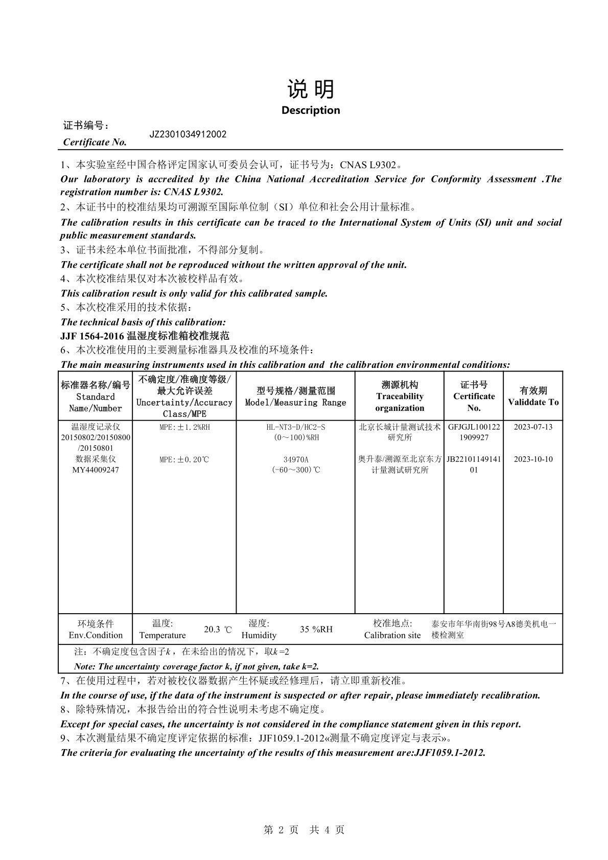 上一條:海峽富民生質(zhì)檢技術(shù)服務有限公司 溫濕度檢定箱校準證書(1) | 下一條:超低溫面源黑體爐(-40-80℃)校準證書 |