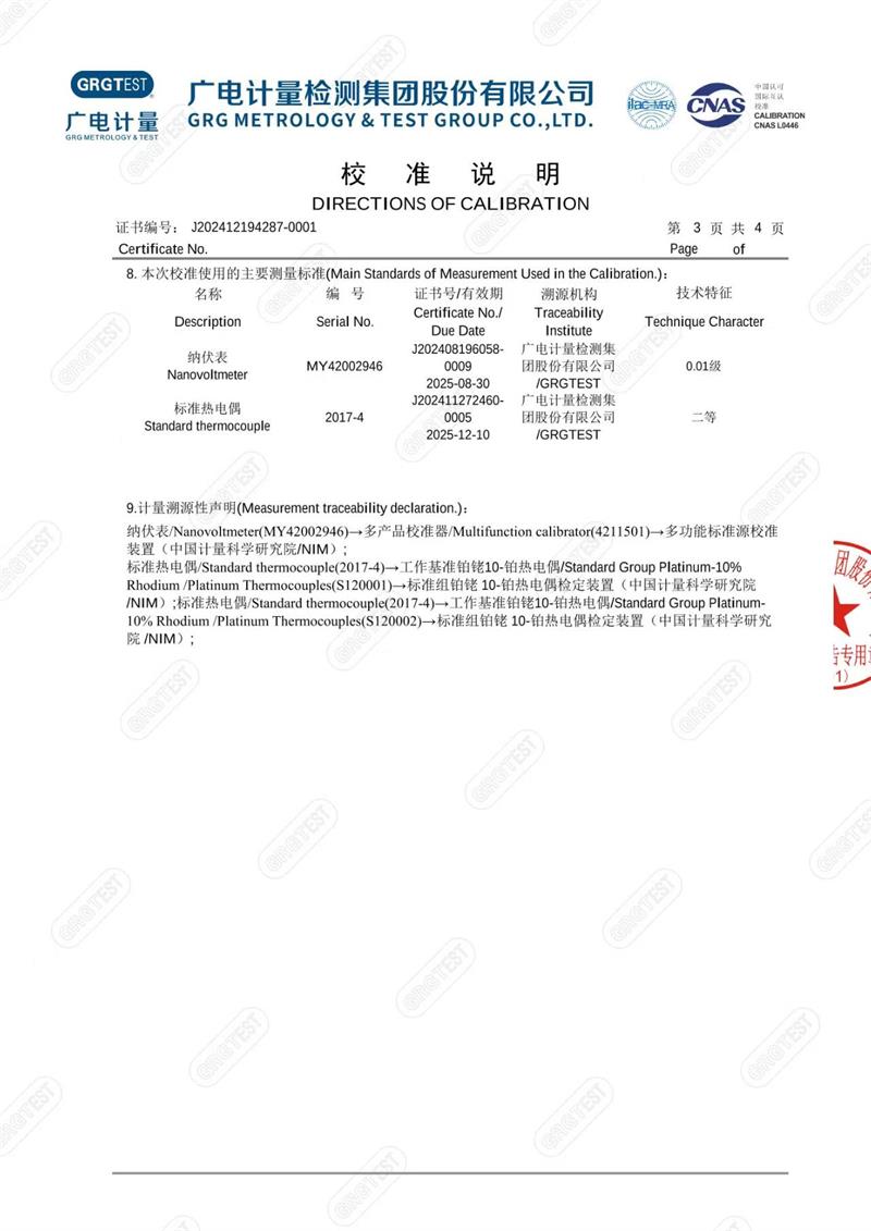 上一條:(T型)低溫測(cè)試熱電偶檢定證書 | 下一條:超低溫面源黑體爐(-40-80℃)校準(zhǔn)證書 |