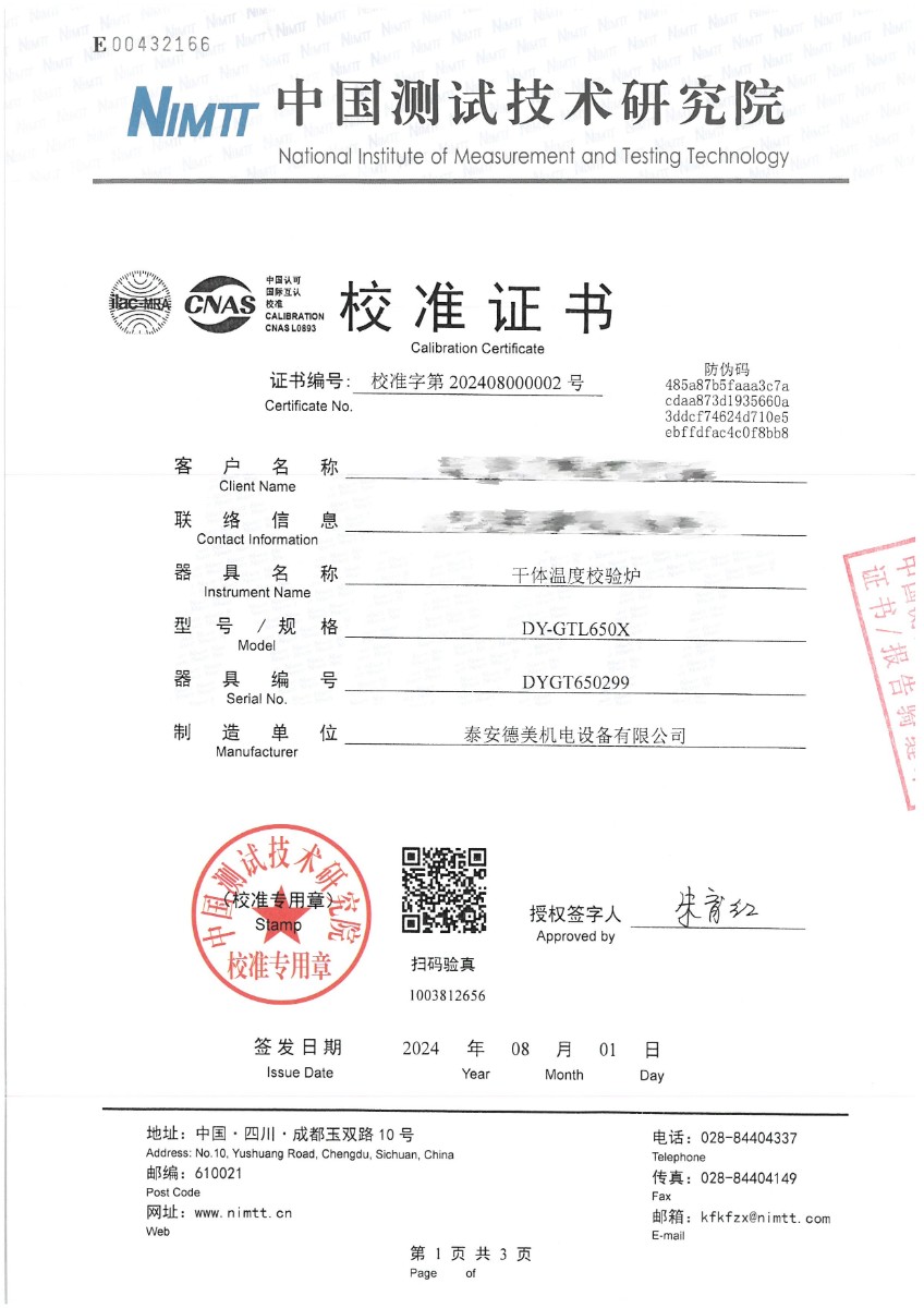 上一條:DY-HT1M-200一體面源黑體爐/黑體輻射源 (-10-80℃ 200mm) | 下一條:便攜式干體爐(-30-150℃)校準(zhǔn)證書 |